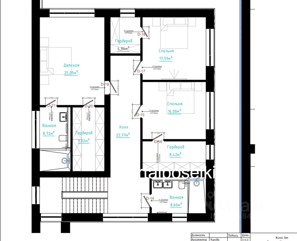 2 этаж: спальня 25 кв.м с санузлом и гардеробной, спальни 18кв.