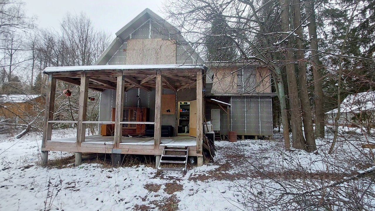 2) жилой дом общей площадью 230 м2 в состоянии незавершенной реконструкции. Изначально это был сруб советской постройки. В 2014 году дом подвергся тотальной реконструкции. От старого дома остались только стены сруба. Стены были пересажены полностью на новый столбчатый фундамент глубиной 190 см. Сделаны полностью новые перекрытия 1го и 2го этажей. Перекрытия каркасные, очень мощные, на базе доски 150х50 и бруса 200х200. Теплоизоляция перекрытий из Рокволл 15 см, в межэтажном перекрытии смонтирована качественная шумоизоляция плюс под половым настилом уложены противошумные маты. Все полы покрыты мощными листами ЦСП толщиной 32 мм. Мансарда и стропильная система были подвергнуты капитальному ремонту. Кровля из Ондулина. К срубу приделана каркасная пристройка размером 6х6 метра без несущих стен внутри. Очень мощный каркас, рассчитана так, чтобы играючи выдержать ураган и падение нескольких вековых деревьев. Пристройка стоит на столбчатом фундаменте глубиной 200 см, выполненного по технологии ТИСЭ. В дом заведены электричество 3 фазы 15 кВт и магистральный газ,