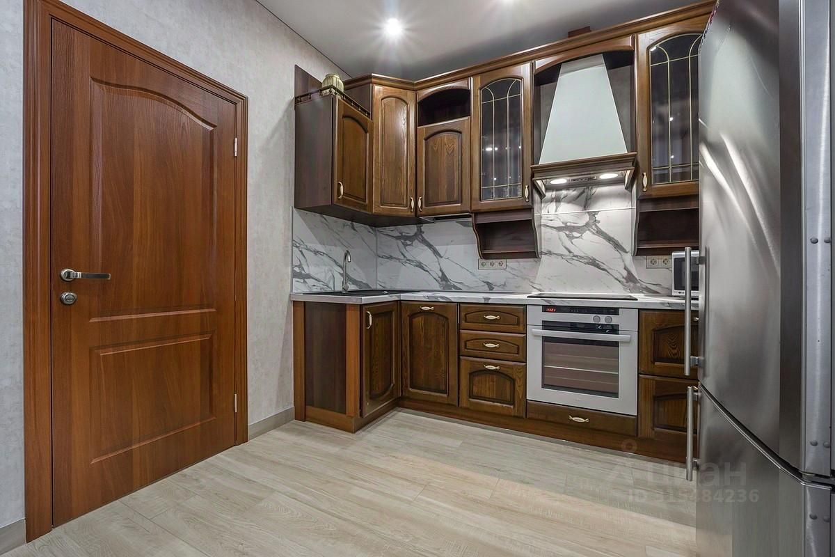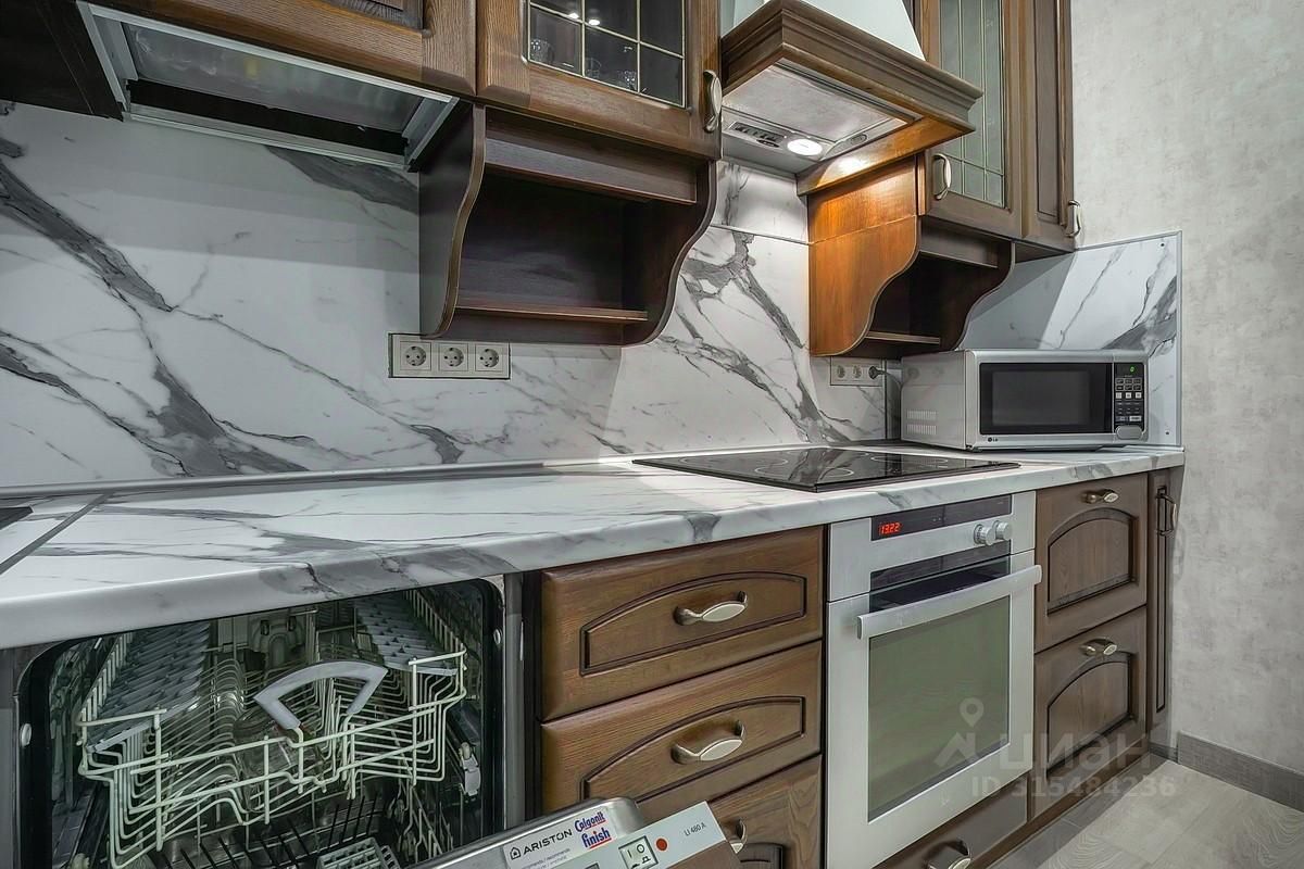 Солнечная сторона, окна смотрят на запад. Квартира представлена с финишной отделкой. Использованы только качественные материалы. Пол и ванная комната выполнена из керамогранита, везде разведен теплый пол. На стенах обои. Кухня массив, диванная группа два кресла и диван, стулья - Италия. Посудомойка Ariston.