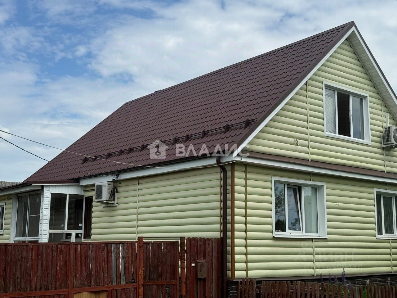 Площадь — 155 кв. м. с участком в 9 соток. Материал постройки — брус, кровля сделана из профнастила. Отопление осуществляется за счёт индивидуального котла. К участку ведёт асфальтированная дорога, подведены все коммуникации: электричество, водоснабжение, газ, канализация. На участке есть баня. Статус участка — индивидуальное жилищное строительство.