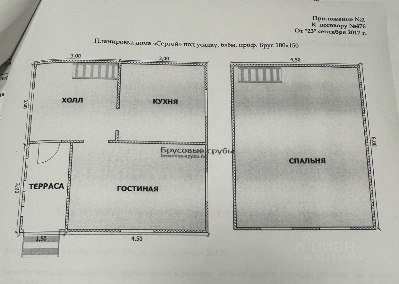 На участке имеется недостроенный дом с параметрами: 6х6 метров, 72м2. Фундамент: сваи винтовые, Металлические 11 штук, D = 108 мм, L = 2500 мм с антикоррозийным покрытием. Профилированный брус хвойной породы, сечением 95х145 мм. Высота потолка: 1 этаж - 2,30м, (17 венцов), 2 этаж - 2,30м. Перегородки: 1-й этаж - брусовые.