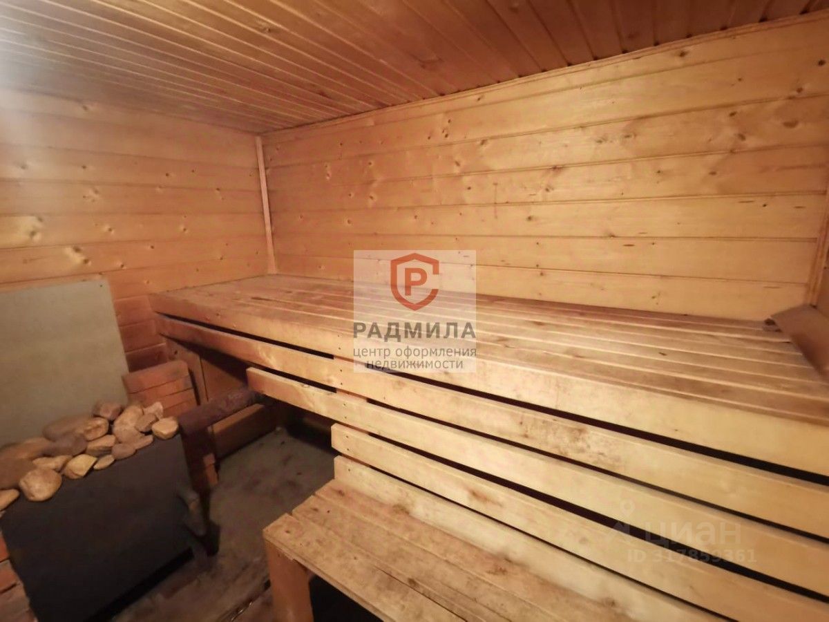 Участок в 15 соток огорожен забором и разделен на хозяйственную зону и уютную зону отдыха, где растут яблони, груша, вишня, а также клубника и малина. Здесь также расположена теплица длиной 6 м и баня размером 6 на 3 м с дровяной печью, парилкой и комнатой отдыха. Для гаража площадью 6 на 4,5 м предусмотрен погреб, а хозяйственный домик для животных подходит как для обустройства места для питомцев, так и для проживания персонала.