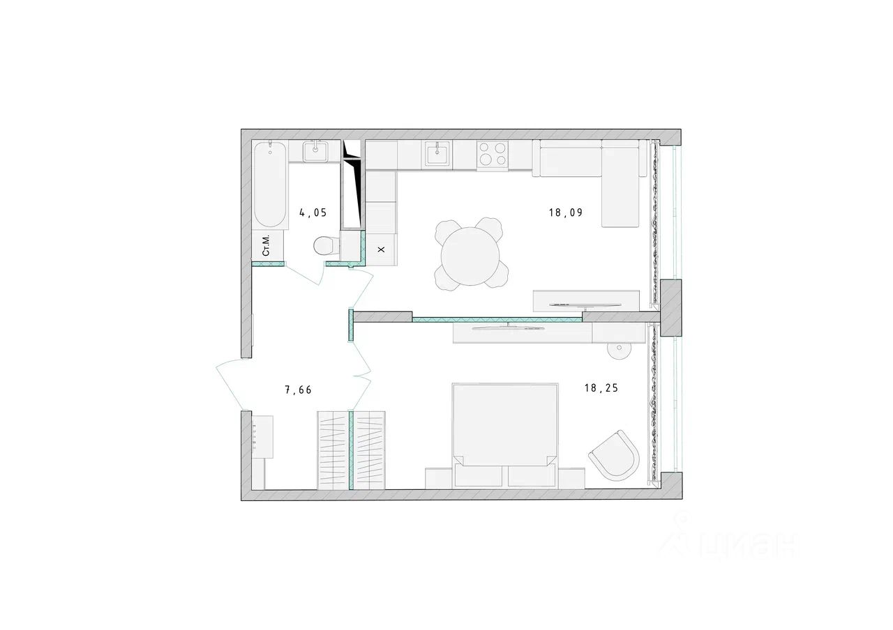 Продаётся 1-комнатная квартира в сданном доме (Корпус 1), срок сдачи: 4-кв. 2023, общей площадью 48.00 кв.м., на 9 этаже.