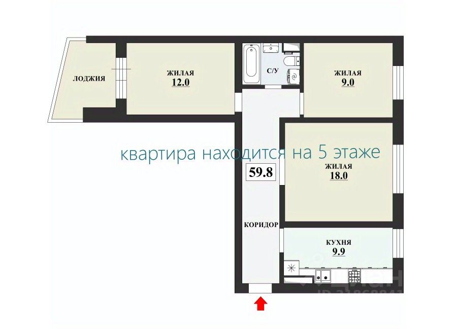 Общая площадь квартиры по ЕГРН :59,8 кв.м(без учета площади балкона), жилая : 39 (комнаты изолированные 18,12 и 9) кв.м, кухня: 9.9 кв.м. Удобная планировка(схему можно посмотреть в объявлении). Лоджия застеклена, окна выходят во двор, квартира светлая. Санузел совмещенный просторный.