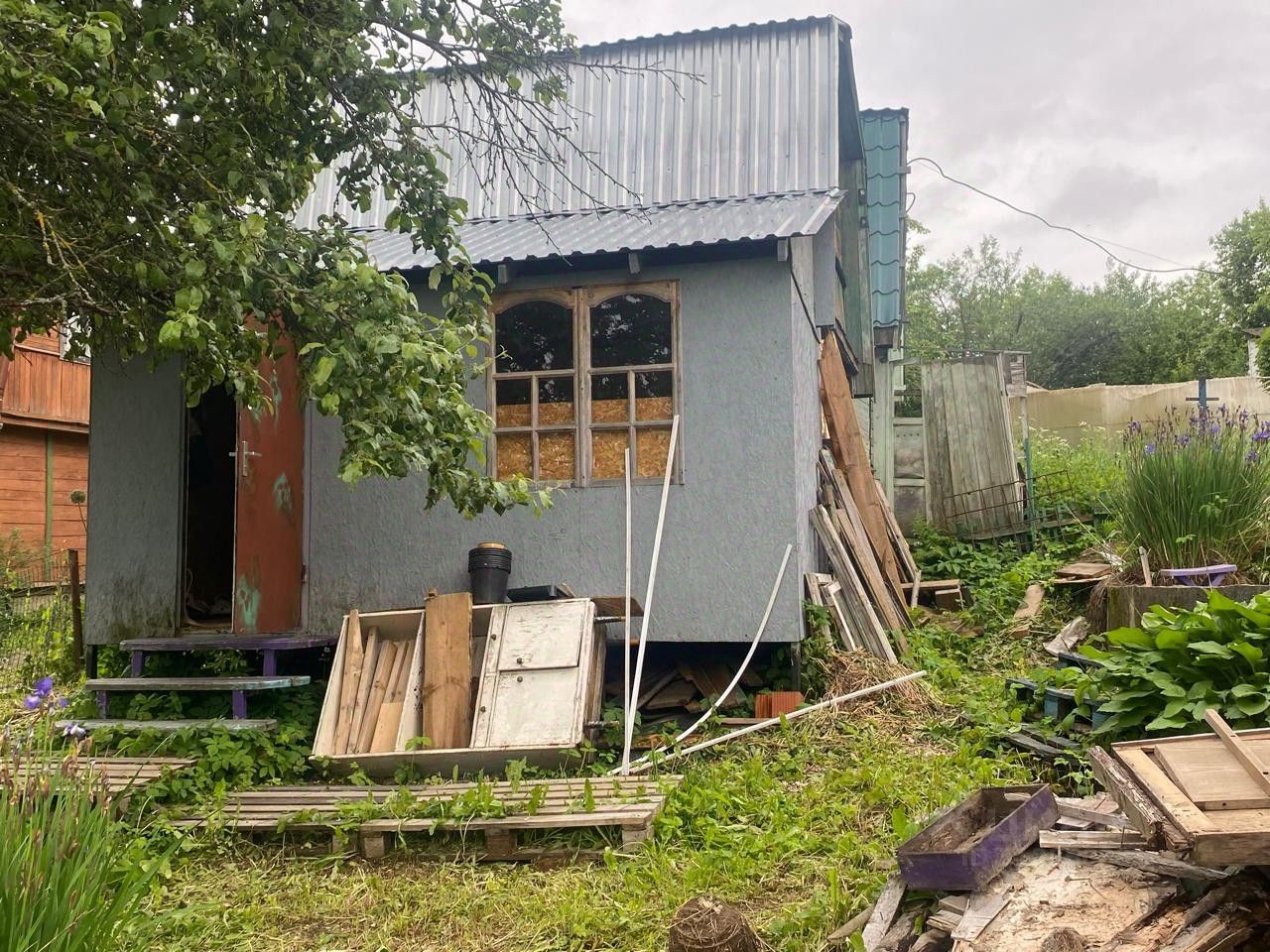 Деревянный 2х этажный садовый дом 40м2. Отопление печное, заведено электричество, летний водопровод.