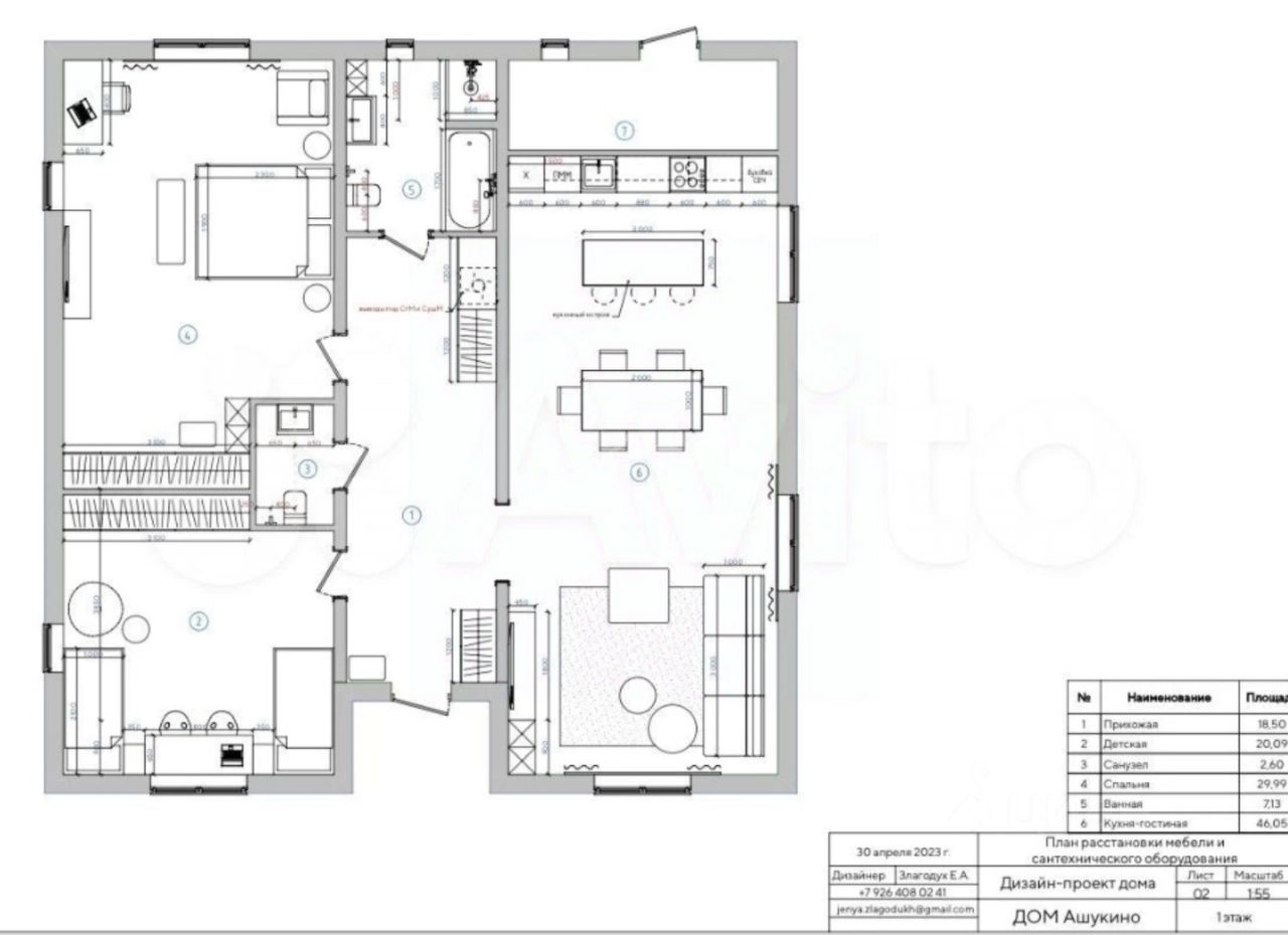 В доме имеется просторный холл 18,5 кв.м, комната 20 кв.м, спальня 30 кв.м, санузел, ванная комната с ванной и душевой, гостевой санузел, кухня-гостиная 46 кв.м. Бойлерная с отдельным входом с улицы.