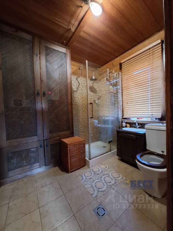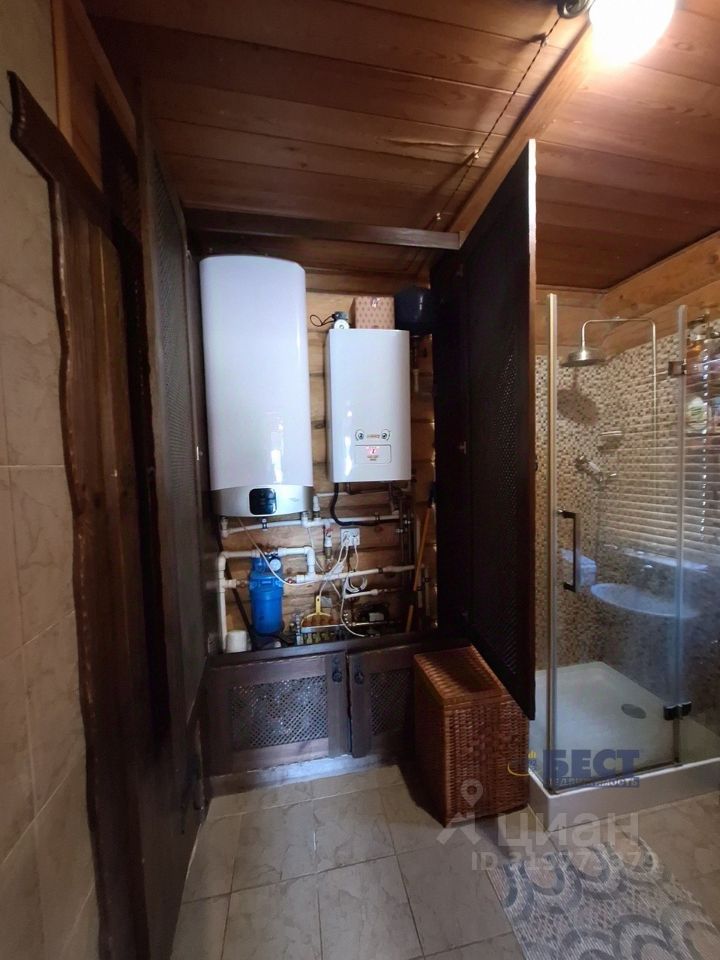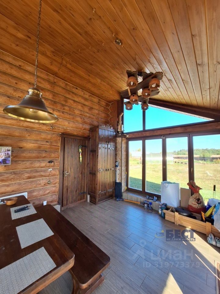 На первом этаже кухня, санузел, баня (дровяная печь-каменка). Гостиная оборудована на просторной светлой веранде. На мансардном этаже пространство поделено на спальную и рабочую зоны. Дом расположен на огороженном участке 55 соток. По документам площадь участка 15 соток, при необходимости - возможно расширить участок до 30 соток документально. Дом построен из соснового сруба, Толщина бревен 26-35см в диаметре. Бревна обработаны и окрашены финской Тиккурилой. В доме установлены высококачественные окна, на веранде - раздвижная система остекления. Материал оконных рам - натуральная лиственница, двойной стеклопакет. В дом заведена вода и канализация. Отопление: первый этаж - теплый водяной пол от электрокотла, второй этаж - французские электроконвекторы. Вся мебель в доме изготовлена по индивидуальному заказу, из состаренной сосны. Кухня оборудована встраиваемой импортной техникой. Электричество разведено ретро-проводкой с латунными розетками и выключателями. Дом построен в конце 2016г., строился как гостевой дом-баня, и оформлен как хозпостройка - чтобы в дальнейшем построить на участке основной дом. Водоснабжение - из собственной скважины (30м), канализация - автономная. Есть возможность подключения к муниципальным водопроводу и центральной канализации. Газ проходит в двух метрах от участка, деревня газифицирована. Электричество 15кВт, при необходимости можно увеличить. По строительству дома сохранена история с фотографиями каждого этапа строительства. Участок огорожен сплошным деревянным забором с автоматическими воротами, доски забора также обработаны и окрашены Тиккурилой.