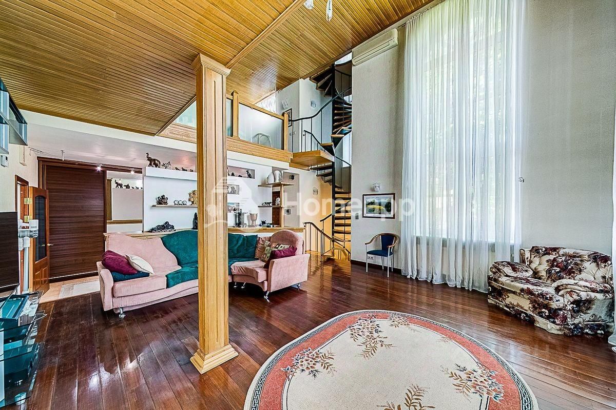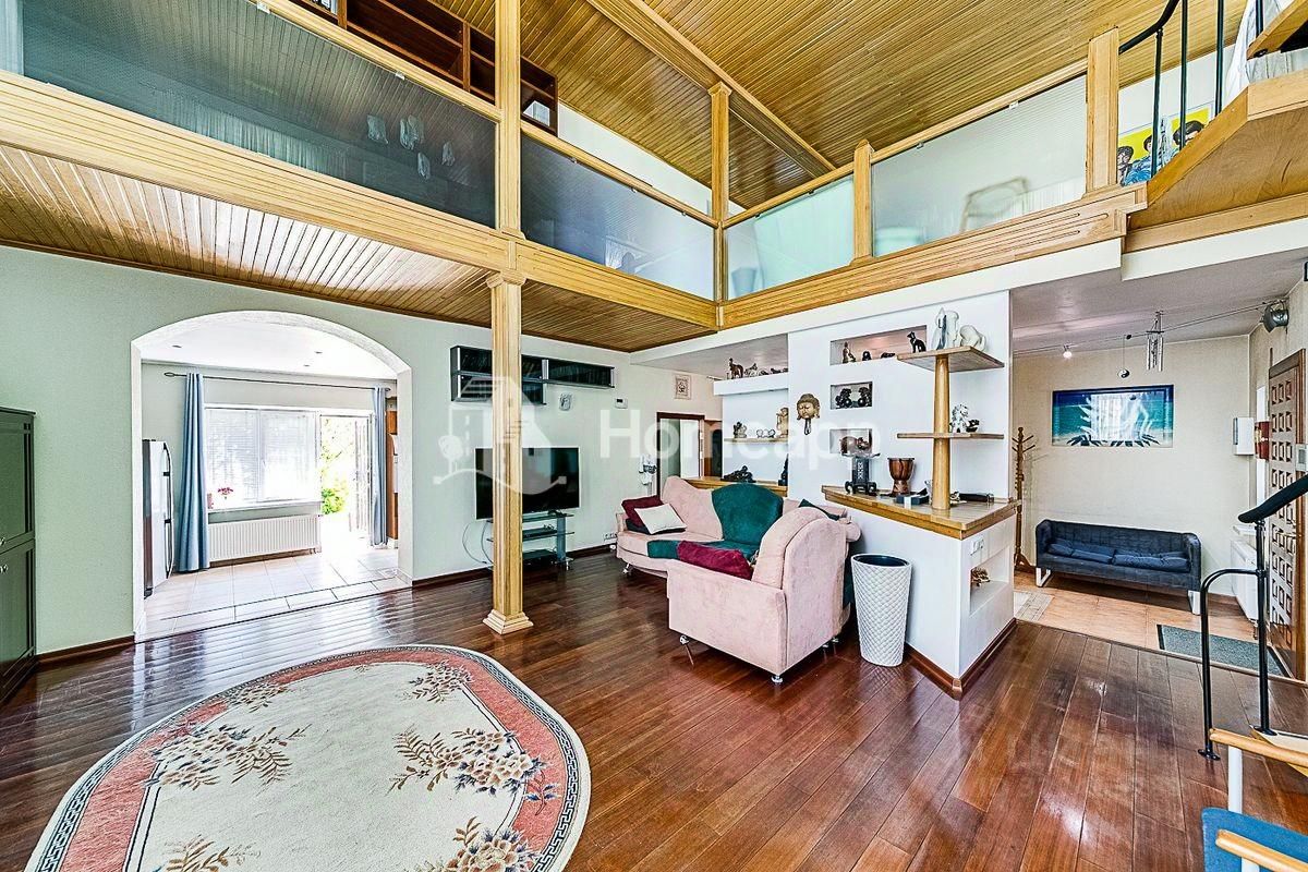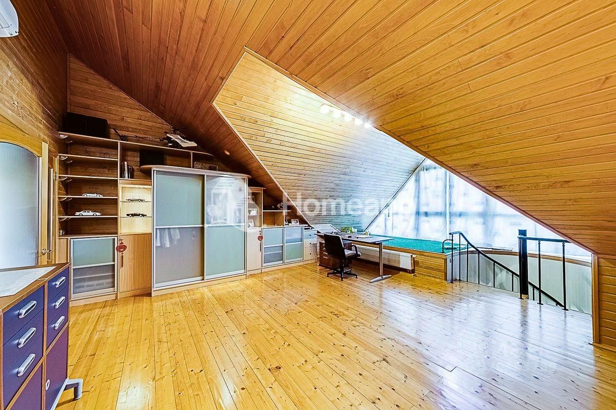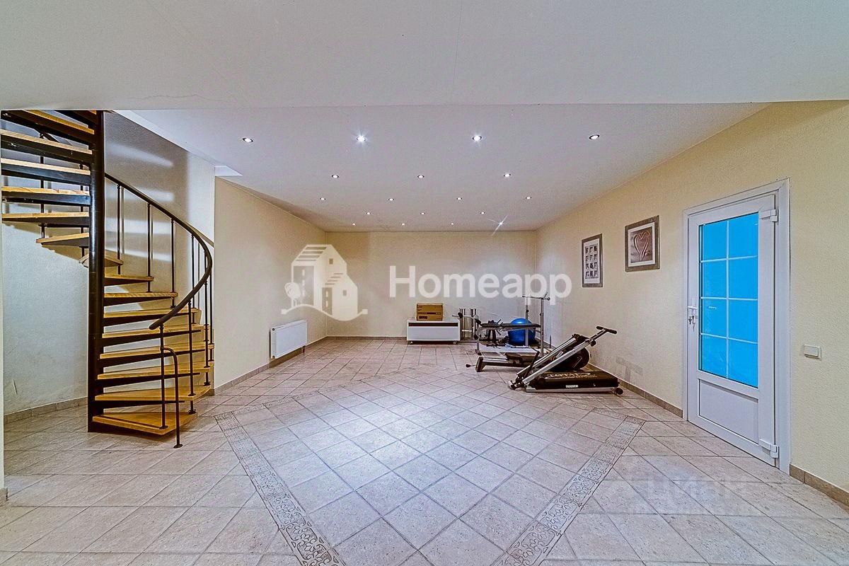 В доме 4 уровня. Цокольный этаж: фитнес-зал, кинозал, бойлерная, подсобная комната, баня-сауна с парогенератором, комната отдыха. 1 этаж: кухня с выходом в сад, гостиная со вторым светом, гостевой с/у с постирочной, теплый гараж с мастерской. 2 этаж: 2 спальни, гардеробная, с/у с душевой, галерея с библиотечной зоной. 3 этаж: 1 спальня, большая игровая, гардеробная, с/у с ванной. Отделочные материалы качественные, натуральные: на полу дубовый паркет, стены ровные с обоями под покраску, хорошая сантехника и смесители (Германия), кухня из натурального дерева (Италия), на мансардном этаже отделка деревом - горная ольха и дуб. Дом полностью меблирован хорошей итальянской мебелью. Достаточно мест хранения и встроенных шкафов в комнатах. Высота потолка - 3м.