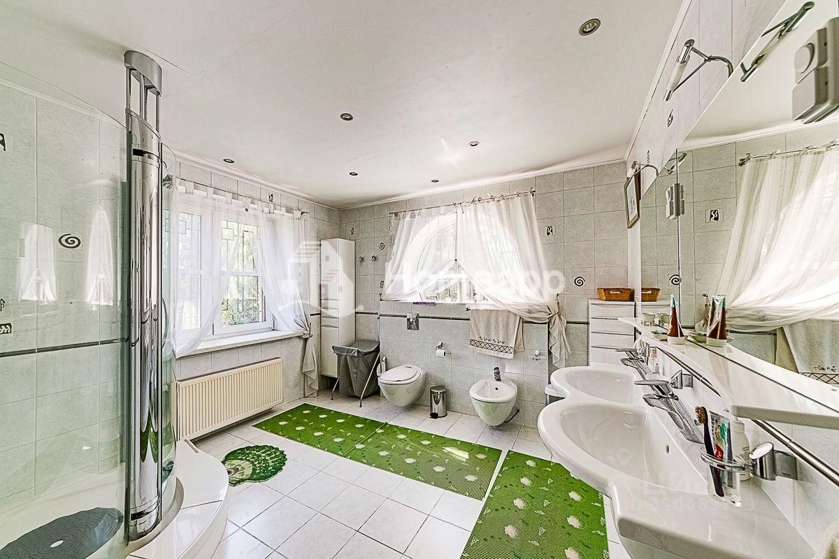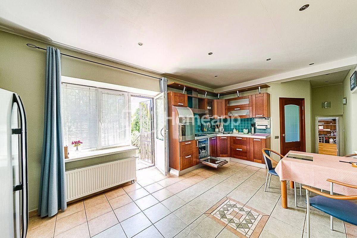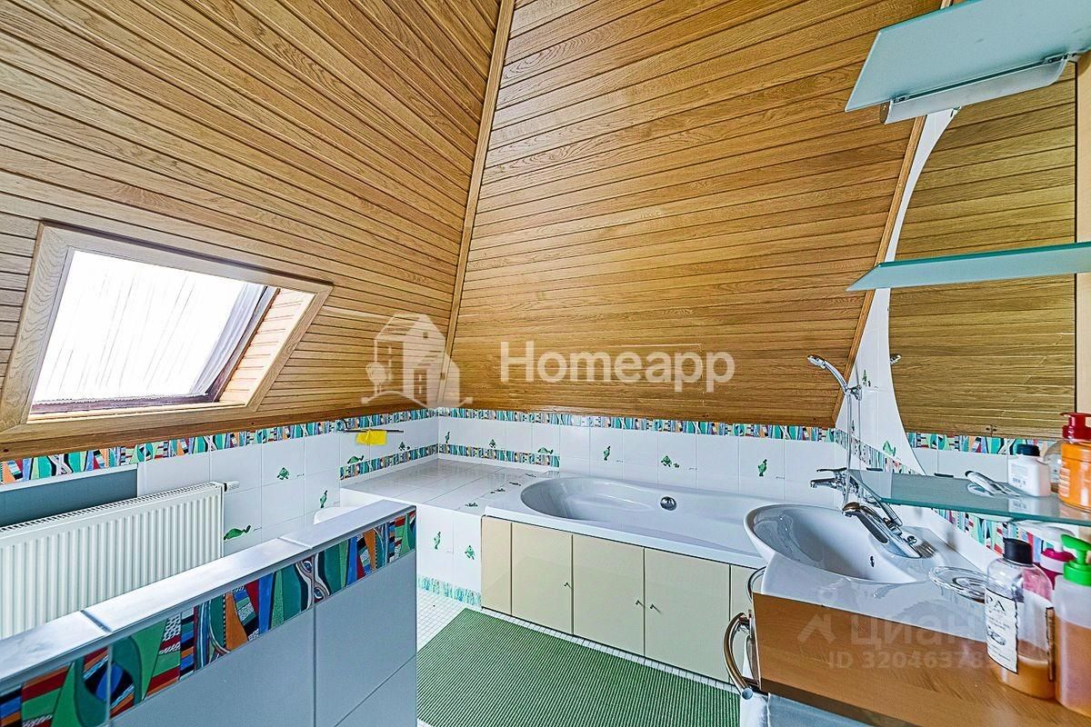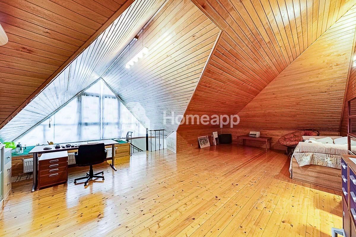 В доме 4 уровня. Цокольный этаж: фитнес-зал, кинозал, бойлерная, подсобная комната, баня-сауна с парогенератором, комната отдыха. 1 этаж: кухня с выходом в сад, гостиная со вторым светом, гостевой с/у с постирочной, теплый гараж с мастерской. 2 этаж: 2 спальни, гардеробная, с/у с душевой, галерея с библиотечной зоной. 3 этаж: 1 спальня, большая игровая, гардеробная, с/у с ванной. Отделочные материалы качественные, натуральные: на полу дубовый паркет, стены ровные с обоями под покраску, хорошая сантехника и смесители (Германия), кухня из натурального дерева (Италия), на мансардном этаже отделка деревом - горная ольха и дуб. Дом полностью меблирован хорошей итальянской мебелью. Достаточно мест хранения и встроенных шкафов в комнатах. Высота потолка - 3м.