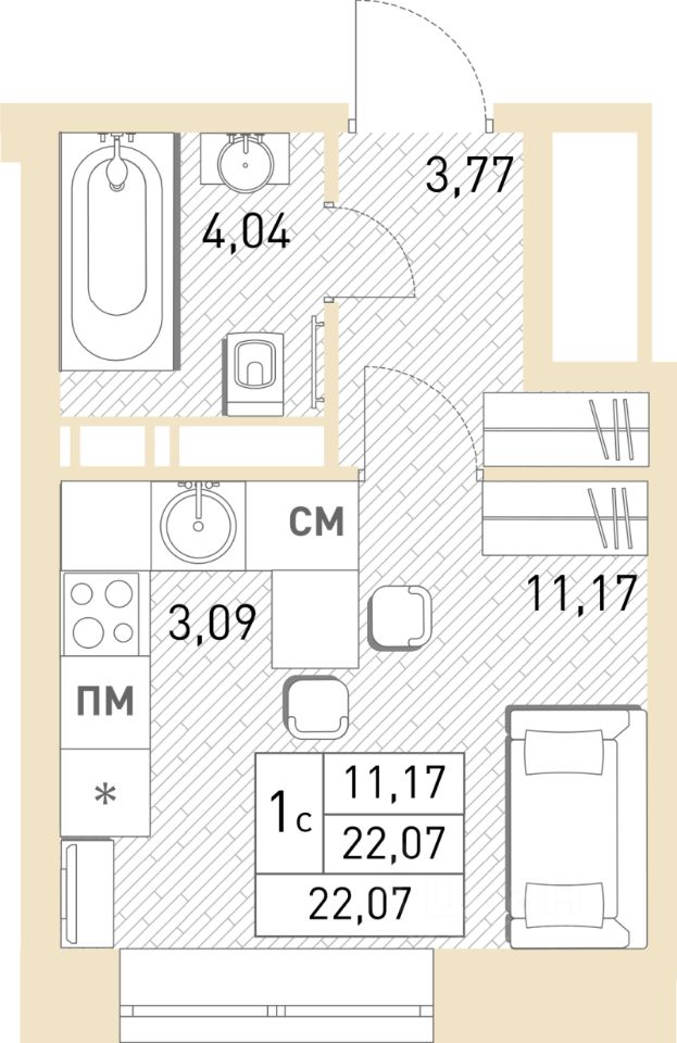 Общая площадь22,1 м2