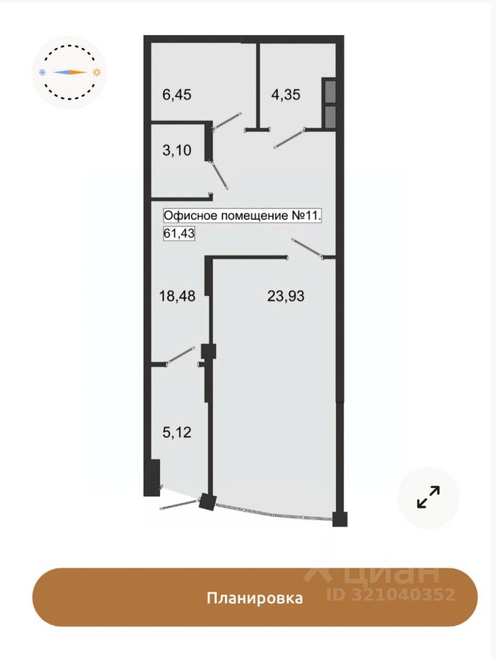 Ключевые преимущества объекта: Площадь: 61,43 кв.м., Назначение: свободное (офис, торговля, услуги и многое другое), Расположение: 1 этаж, секция 3, Особенности: высокие потолки, предусмотрен отдельный вход. Уже установлена автоматическая пожарная сигнализация и система оповещения и управления эвакуацией (АПС и СОУЭ). Свободная планировка позволяет адаптировать пространство под конкретные задачи вашего бизнеса.