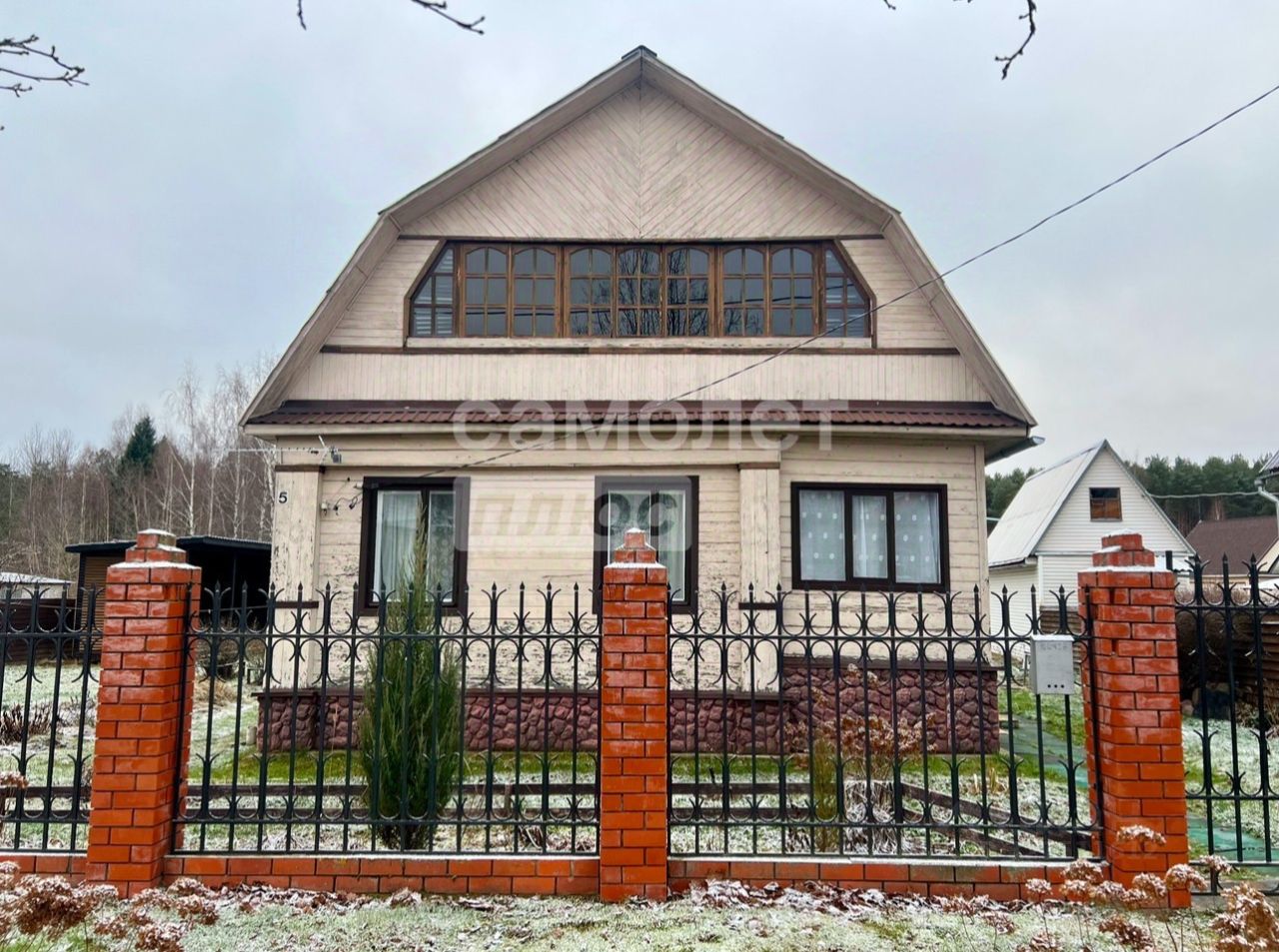 Жилой дом 111 кв.м., фундамент ленточный высокий, сухой, стены первого этажа - бревно, стены второго этажа - каркас. Межэтажные перекрытия деревянные, полы деревянные, стены внутри отделаны деревом, окна первого этажа деревянные, окна второго этажа пластиковые. Крыша из оцинкованного профлиста. Отопление в настоящее время от стационарных радиаторов. Сейчас дом используется в сезон с начала апреля до середины ноября. При установлении газового оборудования дом можно будет использовать круглогодично.
