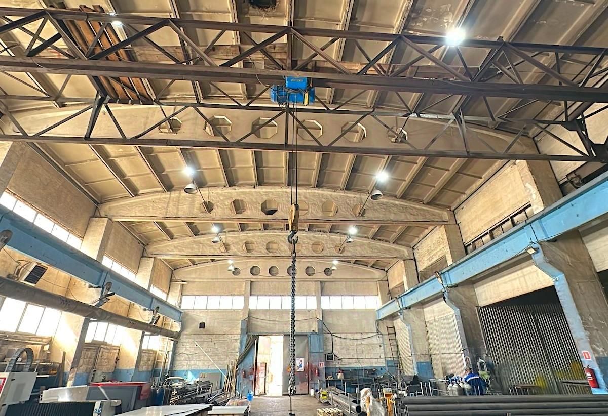Характеристики: Общая площадь: 1250 м² Производственные помещения: 1100 м² Офисные помещения: 150 м² Земельный участок: 3 га Высота потолков: 9,5 м Крановое оборудование: 5 т