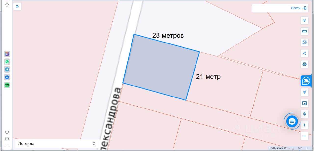 Участок угловой, можно сделать въезд как с улицы Александрова, так и с проезда между соседними участками. Огорожен с двух сторон.