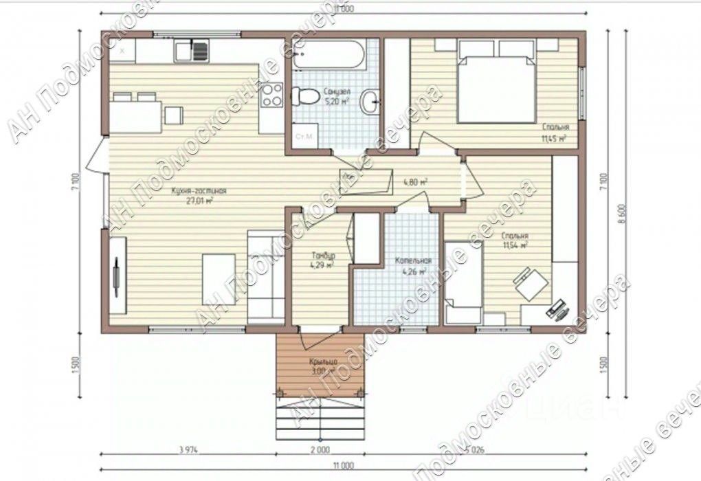 Современная канадская технология. Идеальная геометрия и заводская сборка. Качественные материалы. Очень теплый и прочный дом для постоянного проживания. Надёжный фундамент: железо-бетонные сваи. Презентабельный фасад под ключ: сайдинг под клееный брус Dосkе. Отличная и продуманная планировка с 2-мя спальнями и большой кухней-гостиной. Из гостиной есть выход на террасу.