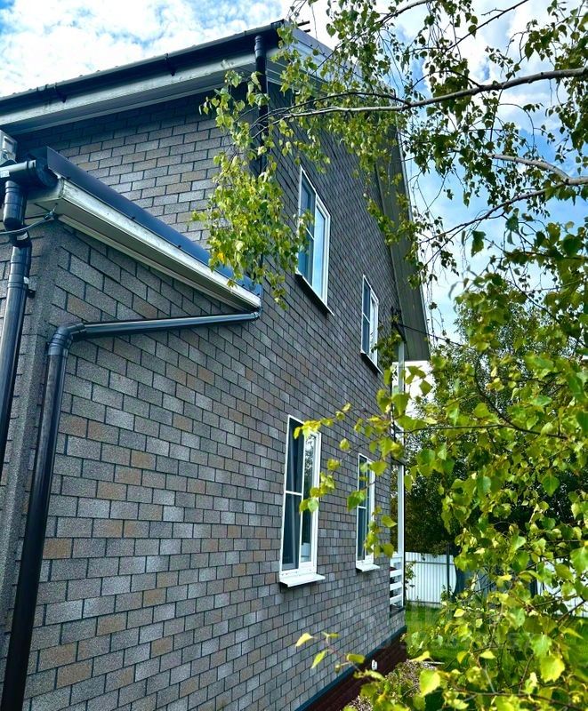 Дом построен в 2020 году по проекту фирмой-застройщиком. Дом находится на гарантии от застройщика. Дом каркасный. Фундамент ж.б. сваи , углубление 5 м. Утепление стен , перекрытий и крыши 200 мм. Снаружи дом обшит фасадной плиткой фирмы Хауберг.