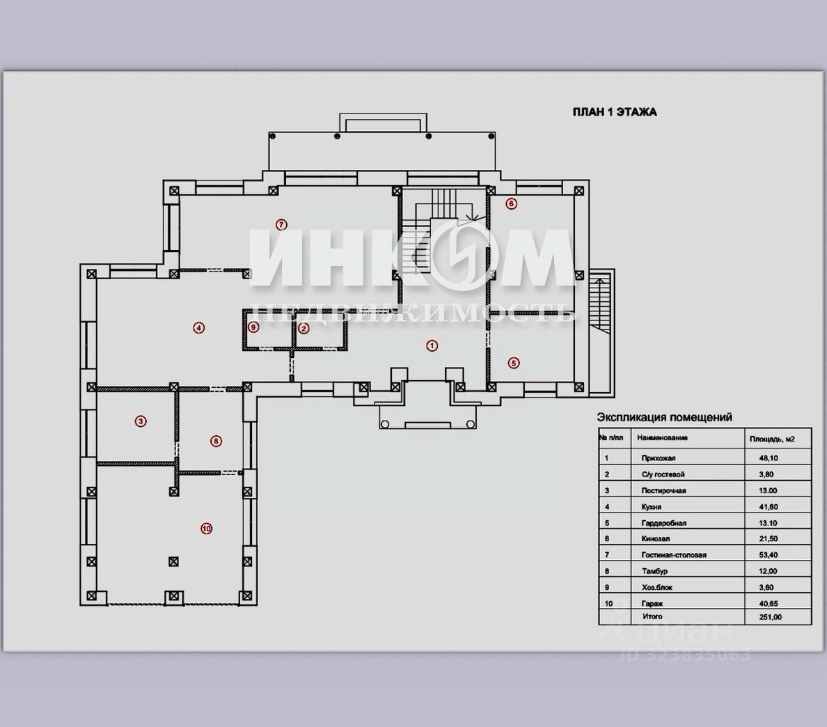 Основной дом выполнен в классическом стиле, высота потолков составляет 3,5-5 м. При строительстве использовались современные материалы ведущих мировых производителей.