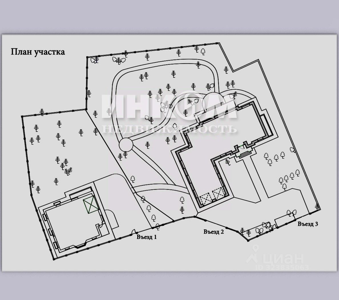 Основной дом - монолитный коттедж площадью - 600 м? и гостевой - 300 м?. Основной - под отделку, жилой - готов к проживанию. Отдельный въезд к каждому дому.