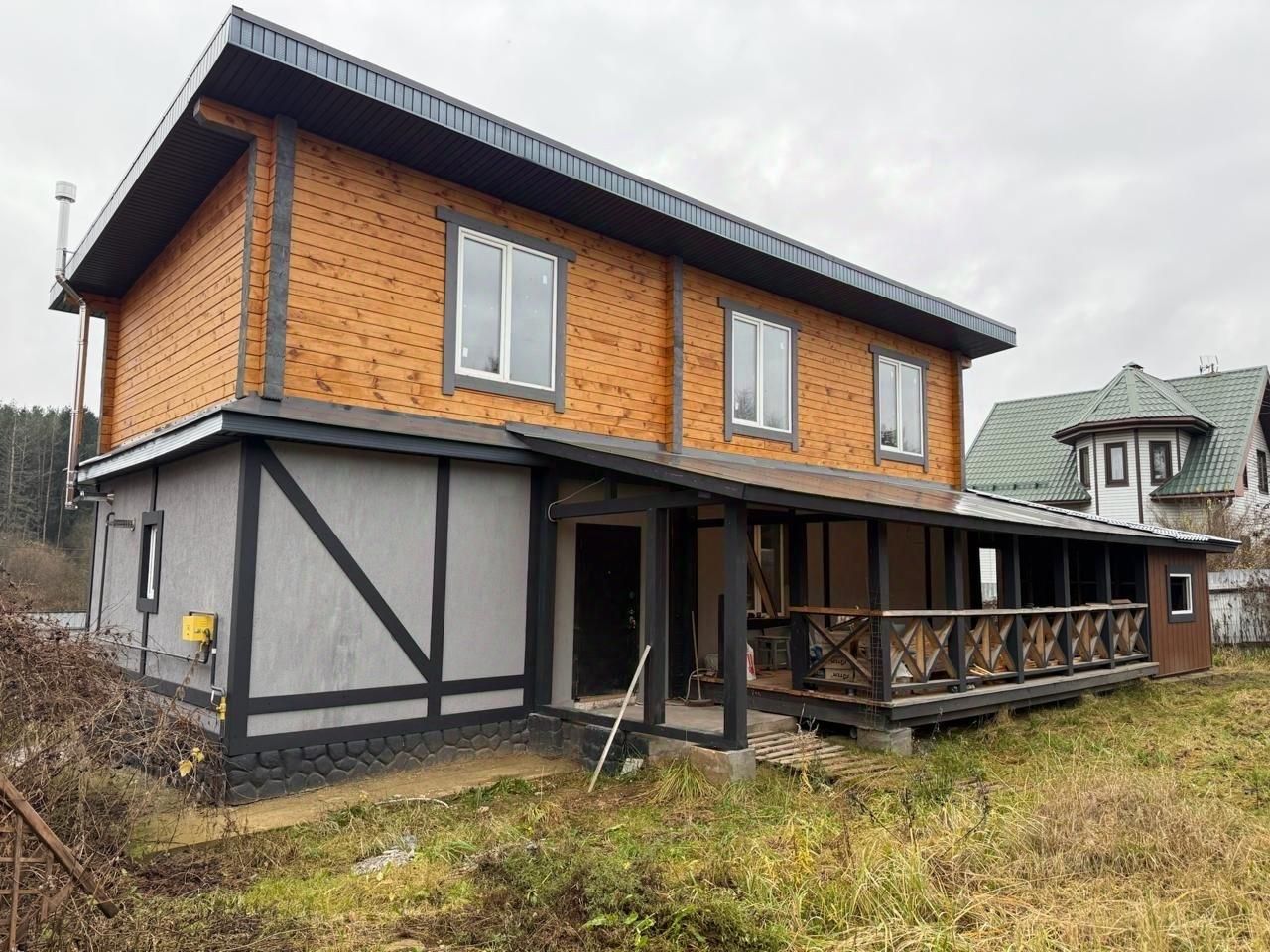 Продается дом в Чеховском районе, деревня Алексеевка. Общая площадь: 130м+веранда с зоной барбекю Материал стен: пеноблок+профилированный брус Фундамент: плита Коммуникации в доме: Вода ( скважина 60м), газ магистральный, свет 15кВт, септик. Окна: стеклопакеты Участок: 13 сот Дом под внутреннюю отделку, что позволяет воплотить в реальность свои задумки. Так же есть проект с уже готовой меблировкой. Планировка дома очень функциональная: Первый этаж- просторный коридор, кухня-гостиная, большой с/у, котельная. Второй этаж: 2 изолированные комнаты, с/у, холл. Изюминка дома, это большая веранда, с мангальной зоной. Есть бригада, которая может сделать все под ключ. Так же на участке есть баня 35кв.