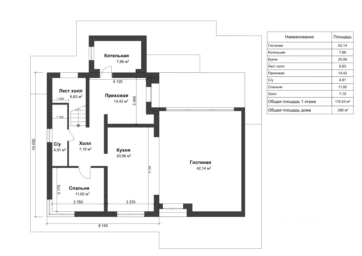 Общая площадь280 м2