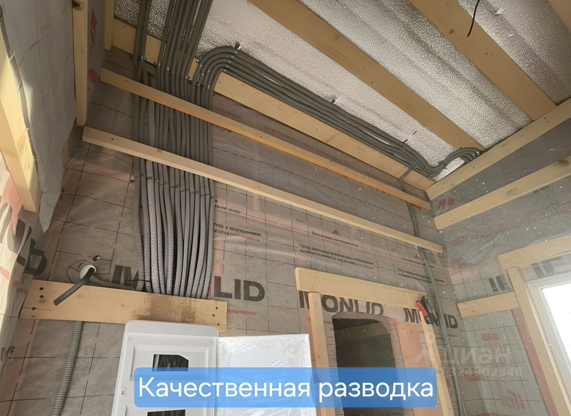 Подключено электричество 15кВт - заведено в дом подземным способом бронированным кабелем, Утепление каменной ватой, Пол и потолок дополнительно утеплены теплофолом, Скрытая разводка электрики в гофротрубе, Вентиляция на кровлю из ванной и кухни, Мягкая кровля технониколь, Отделка фасада хаубергом, Панорамное окно с выходом на террасу, качественные двухкамерные окна.