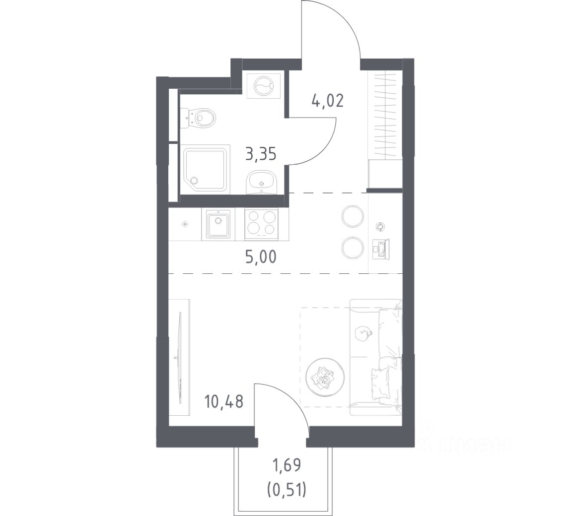 Строим кварталы для жизни с заботой о будущем. Предлагается студия комфорт-класса площадью 23,36 кв.м в корпусе 1 на 9-м этаже, в жилом комплексе ''Космический Квартал''.