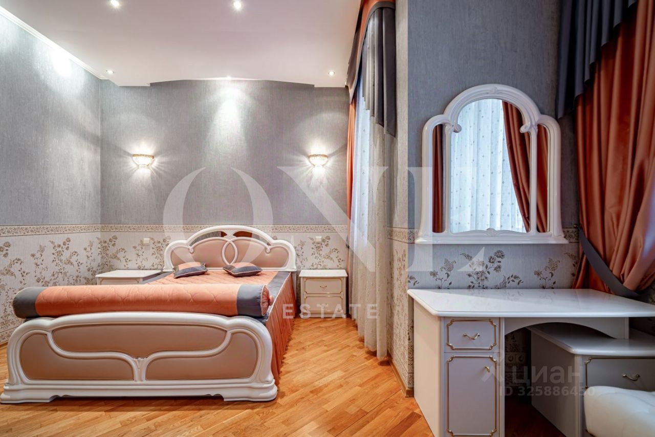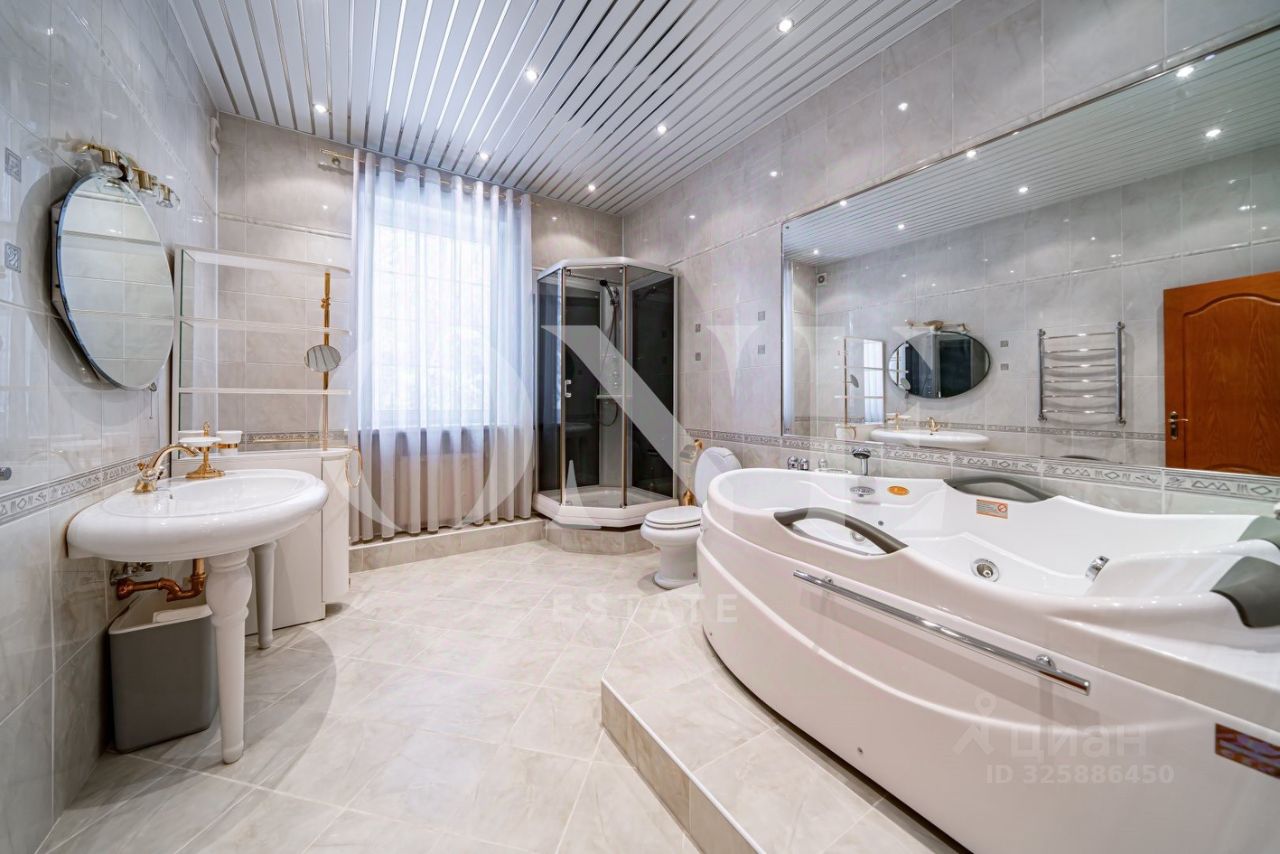 ID 8046: Предлагается классический дом 430 кв.м на живописном лесном участке 34 сотки в охраняемом СНТ Трубачеевка в 15 км от МКАД по Минскому шоссе. Планировка дома 1 этаж холл, кухня, гостиная с камином и выходом на террасу, мний сад, санузел гостевой, гардеробная 2 этаж верхняя гостиная с камином, 2 спальни, просторный санузел, игровая 3 этаж мастер-спальня с гардеробными и ванной комнатой цокольный этаж бильярдная, винная комната, сауна, хамамм, душевая, санузел, котельная На участке дополнительно построена баня из оцилиндрованного бревна 80 м2 с кухней, камином и гостевой комнатой на втором этаже, уличный бассейн, чайный домик и летняя беседка. В доме 2 камина, подогрев пола, генератор, охранная сигнализация Гольфстрим.