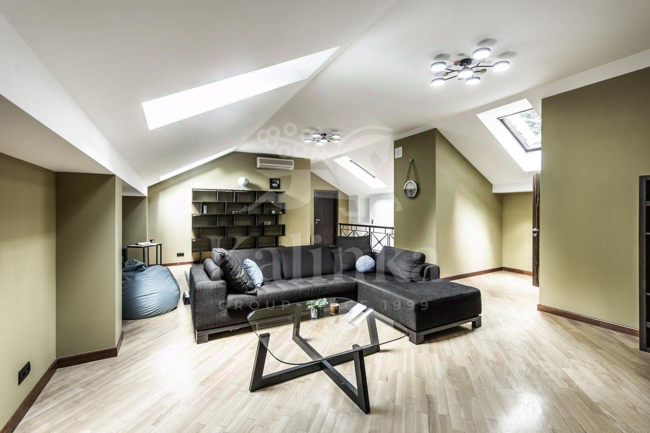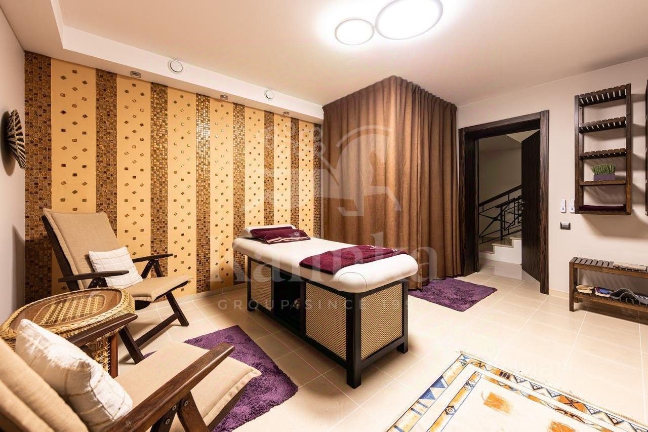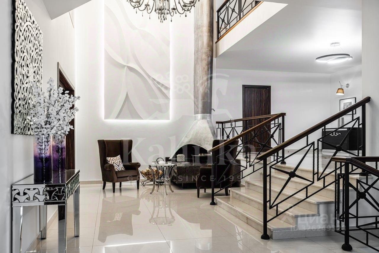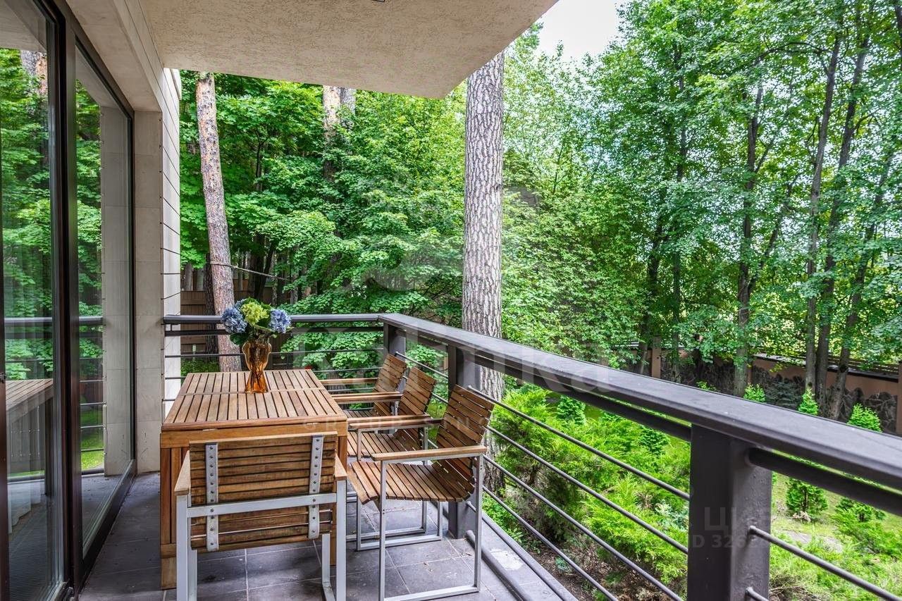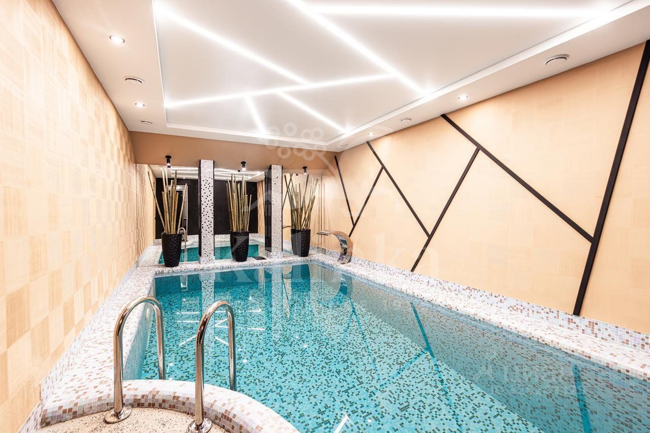 Планировка: Цоколь: сауна, душевая, комната отдыха/раздевалка, бассейн, гараж, 2 с/у, 1 этаж: холл с камином, гардеробная, с/у, кухня, столовая, кладовая/постирочная, гостиная, спортзал, с/у, терраса, 2 этаж: блок для персонала с отдельным входом (спальня, кухня), холл, спальня с с/у и ванной на втором этаже, кабинет, спальня с кабинетом и с/у, балконы, Мансарда: комната отдыха, с/у с душем, спальня с балконом.