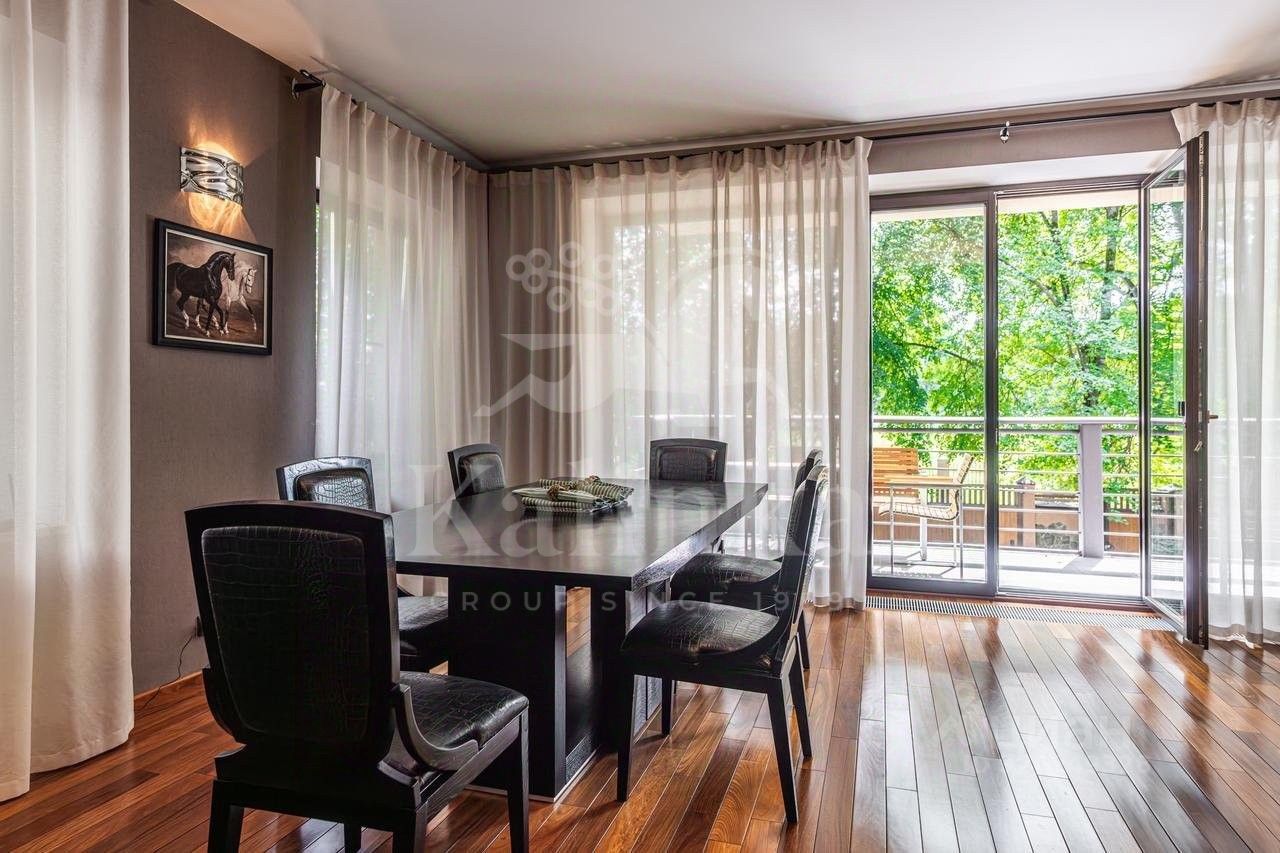 Красивый участок со склоном, газон, лесные деревья. Есть гараж на 2 м/м и парковка на 4 автомобиля. Дом расположен напротив парковой зоны с великолепными видовыми характеристиками.