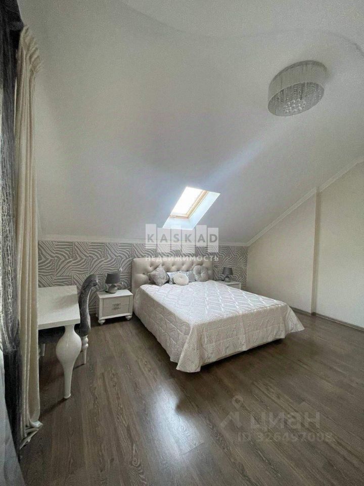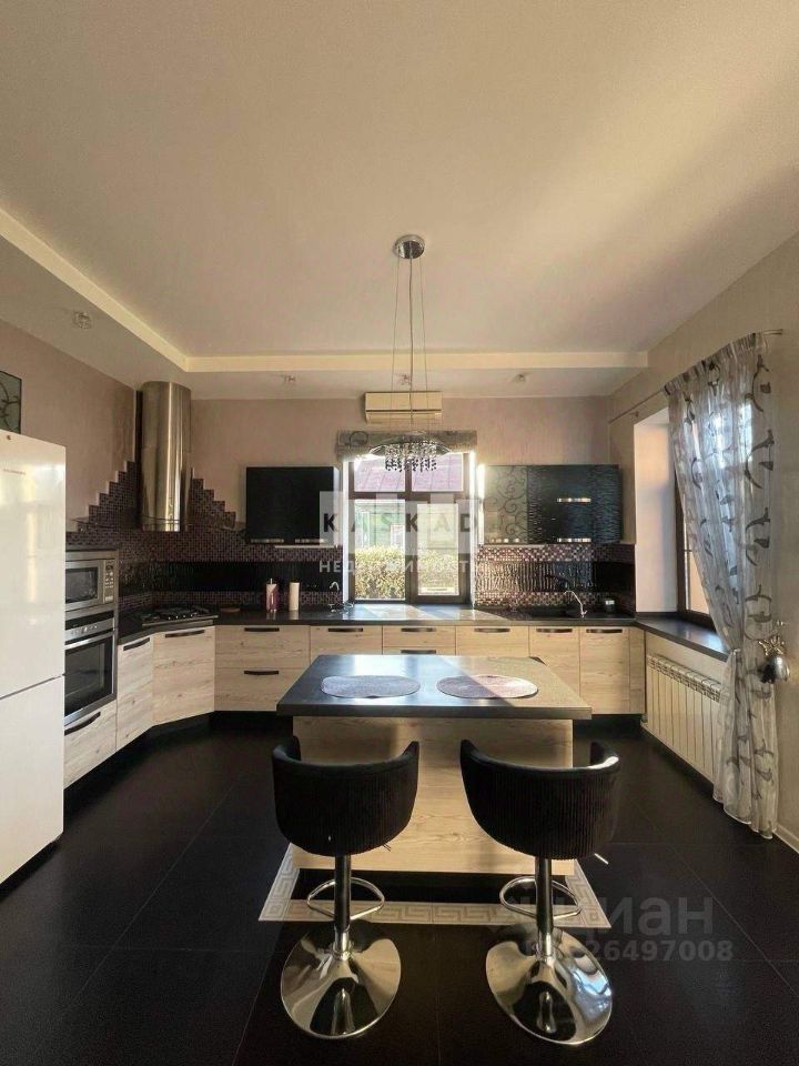 В доме большая кухня - столовая, 5 комнат, два санузла. В цокольном этаже расположена котельная. К дому пристроен теплый гараж и большая веранда. Дом полностью меблирован, мебель и техника остается покупателю.