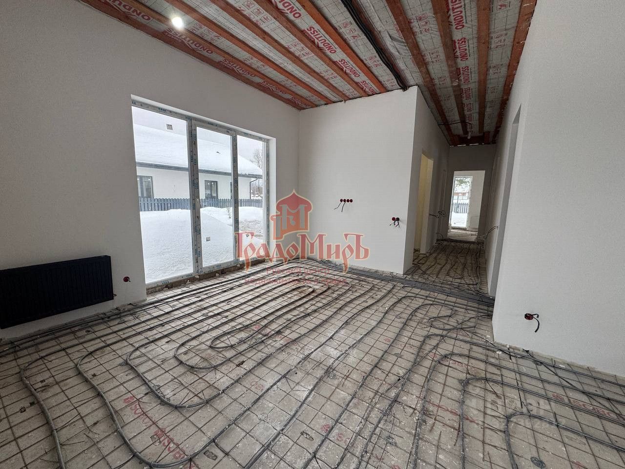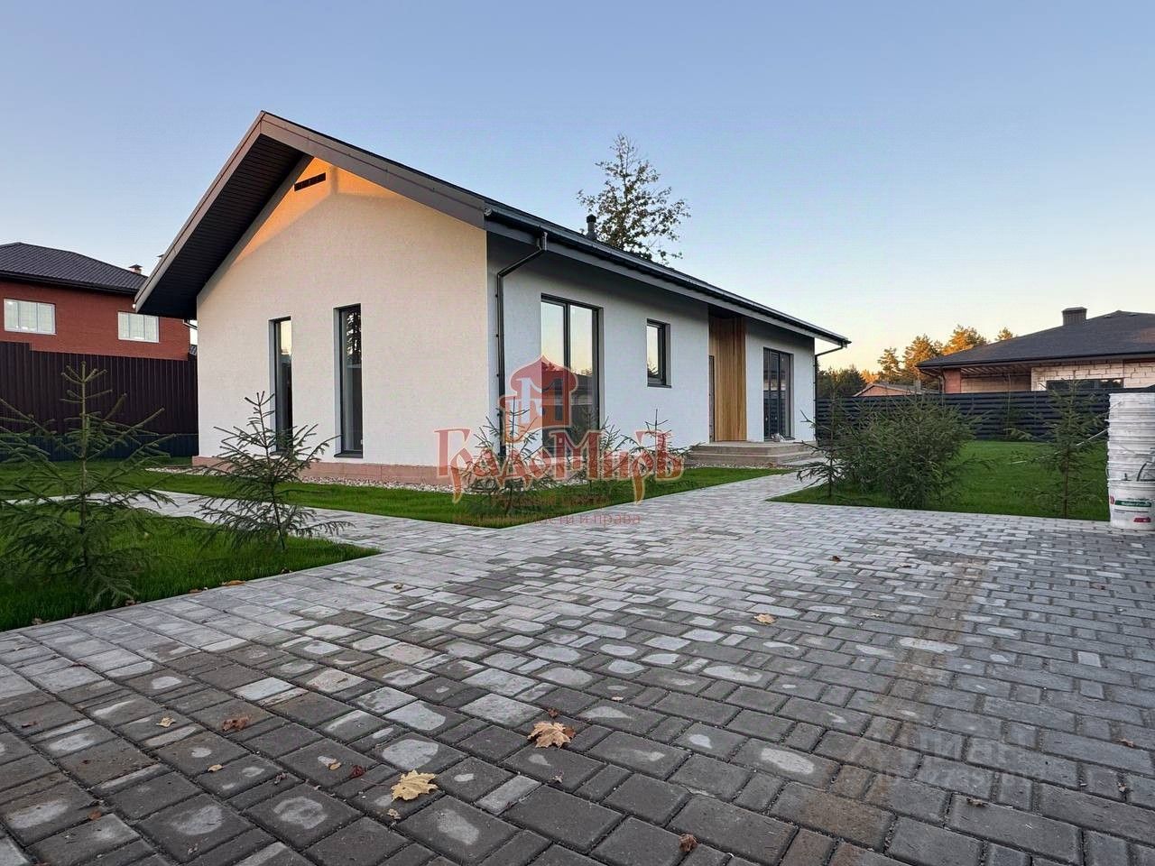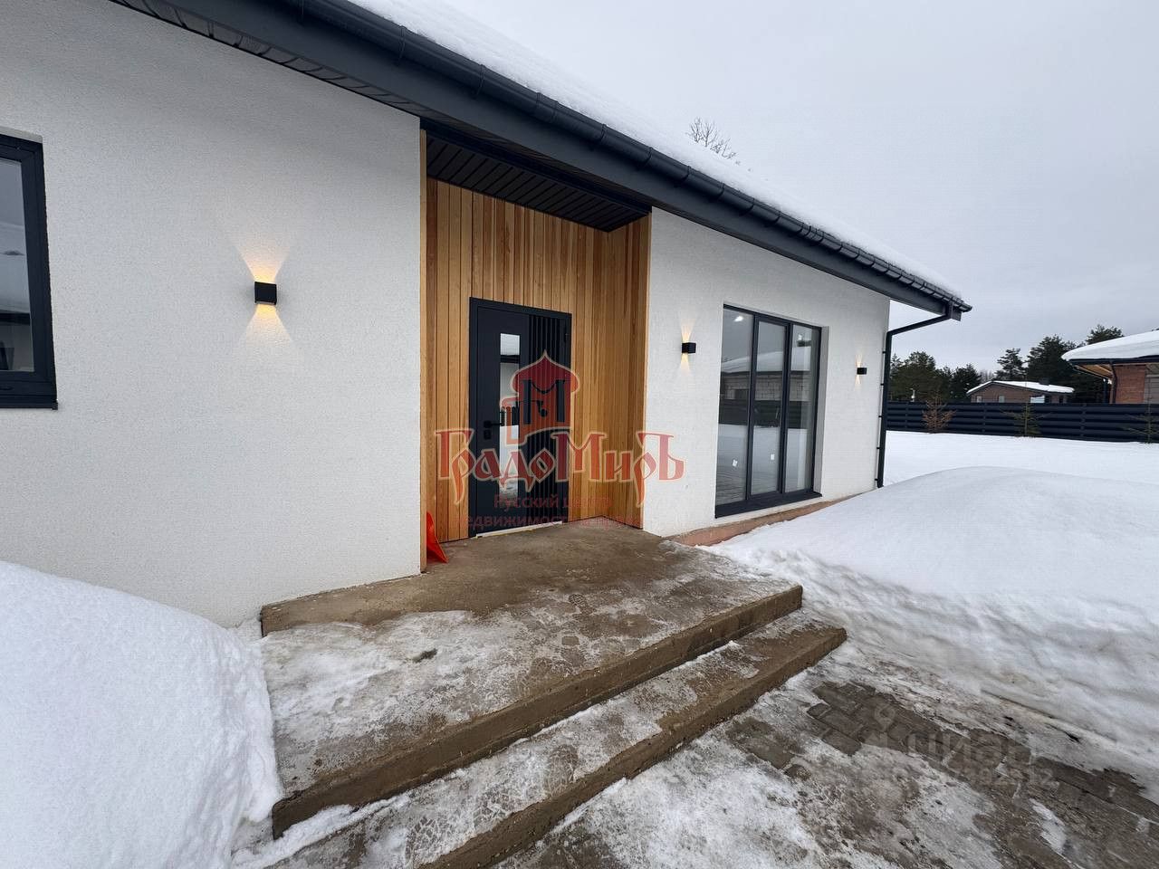 О ДОМЕ Дом общей площадью 110 кв.м., построен из газосиликатных блоков толщиной 400 мм, снаружи дом отделан декоративной штукатуркой с элементами из дерева. Стоит на бетонной плите. Высокие потолки 3 м. Дом состоит из просторного холла, кухни гостиной с панорамными окнами. Две изолированные комнаты , которые можно сделать спальней детской, кабинетом и мастер спальня со своим санузлом. Сделана техническая комната (бойлерная-котельная) и еще один санузел. Внутренняя отделка вайт бокс (готовая чистовая). Высокие потолки. Крыша дома утеплена 200 мм. и покрыта мягкой черепицей Шинглас, вокруг дома сделана дренажная система. Дом предназначен для круглогодичного проживания.